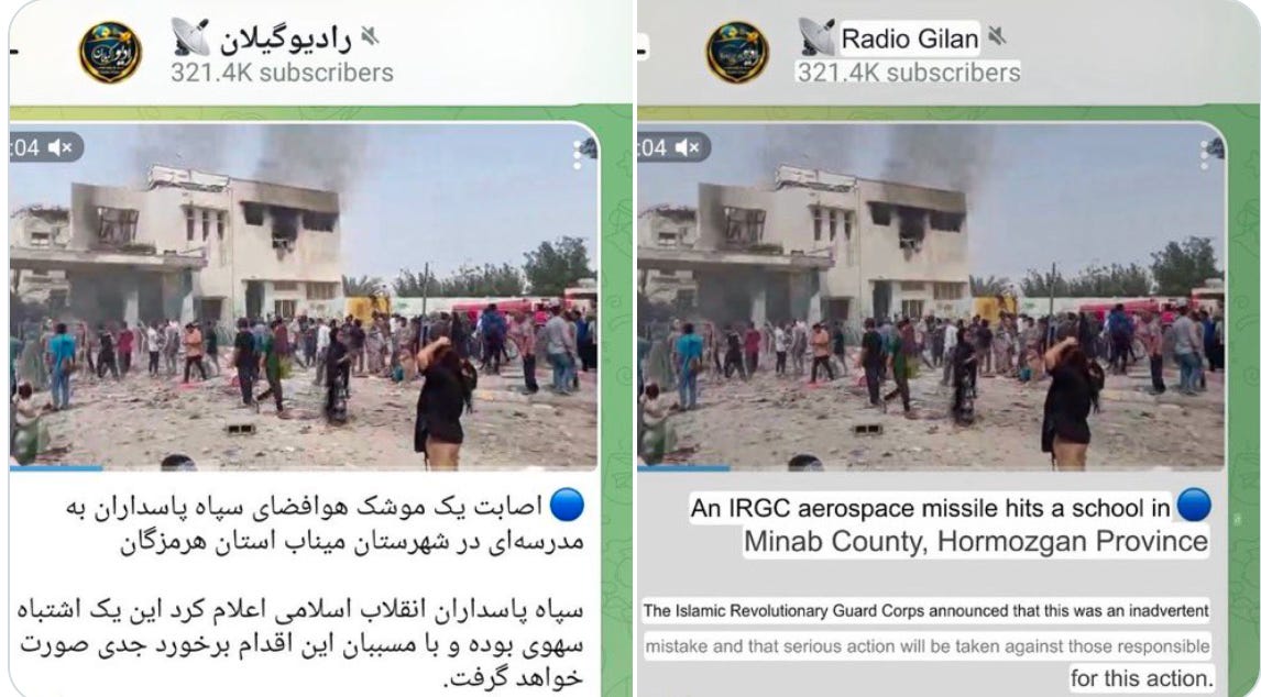 But of course we are in a war where disinformation or ‘uninformed takes’ are quickly disseminated and we all make some mistakes. I reported on the girls’ school in Iran that had come under fire and where multiple casualties apparently had occurred. This was qualified as fake news - see the image, but even that was subsequently doubted - while at the same time al-Jazeera and the BBC reported it and so the story kept floating around. I did some research and ran it through some AI platforms, but it is as of today unclear whether it was an American, Israeli or indeed a misfired IRGC missile that hit the school. We just don’t know yet and Iran’s internet has gone dark which creates another opportunity for guesswork and misinformation. Moral of the story: take every piece of battlefield news with a grain of salt and wait with recycling it. Someone somewhere will correct it.